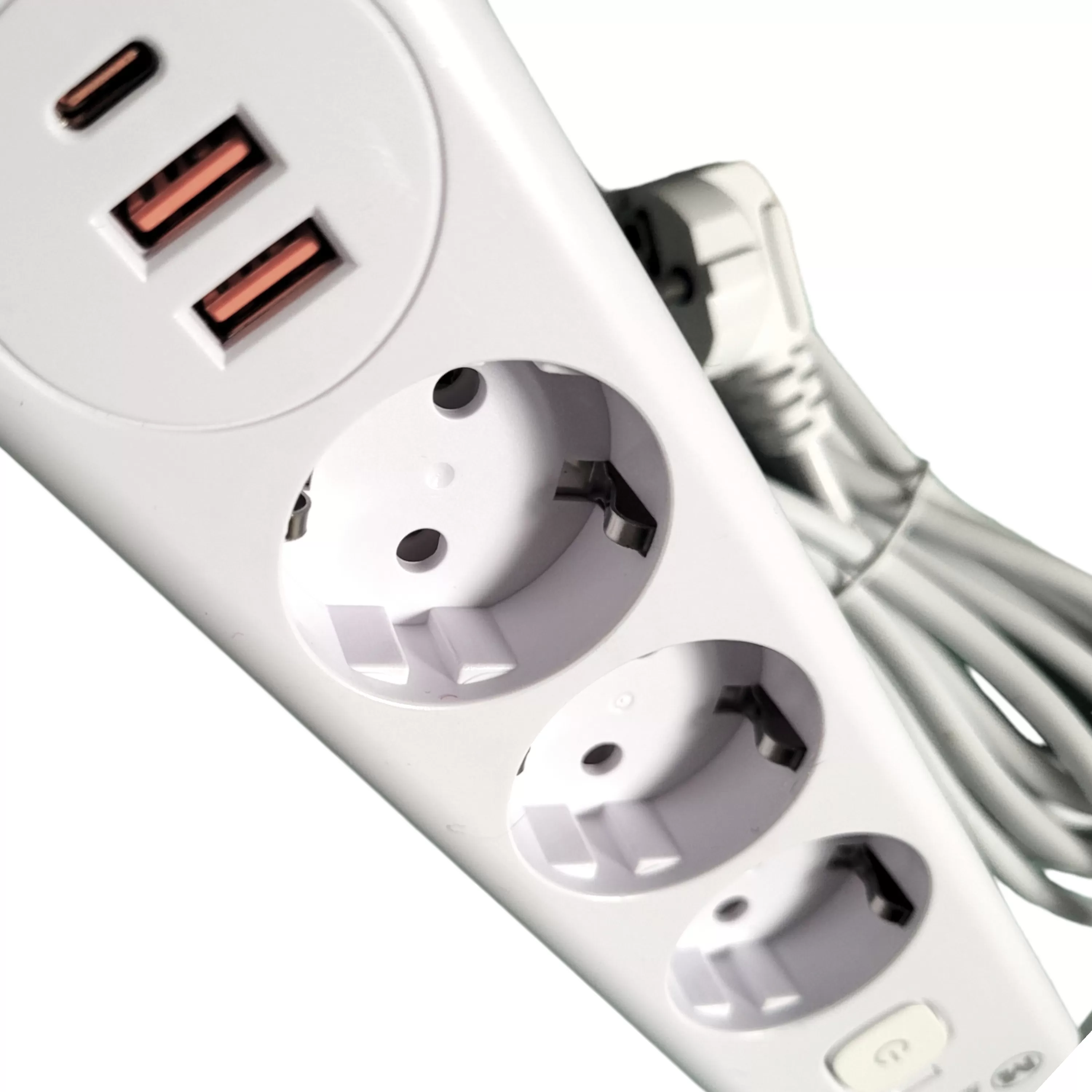 Удлинитель с заземлением 2 м, глубокий, 3 EURO розетки, 5 USB портов,Type C, U 314, "MAXIMUM" MX 147