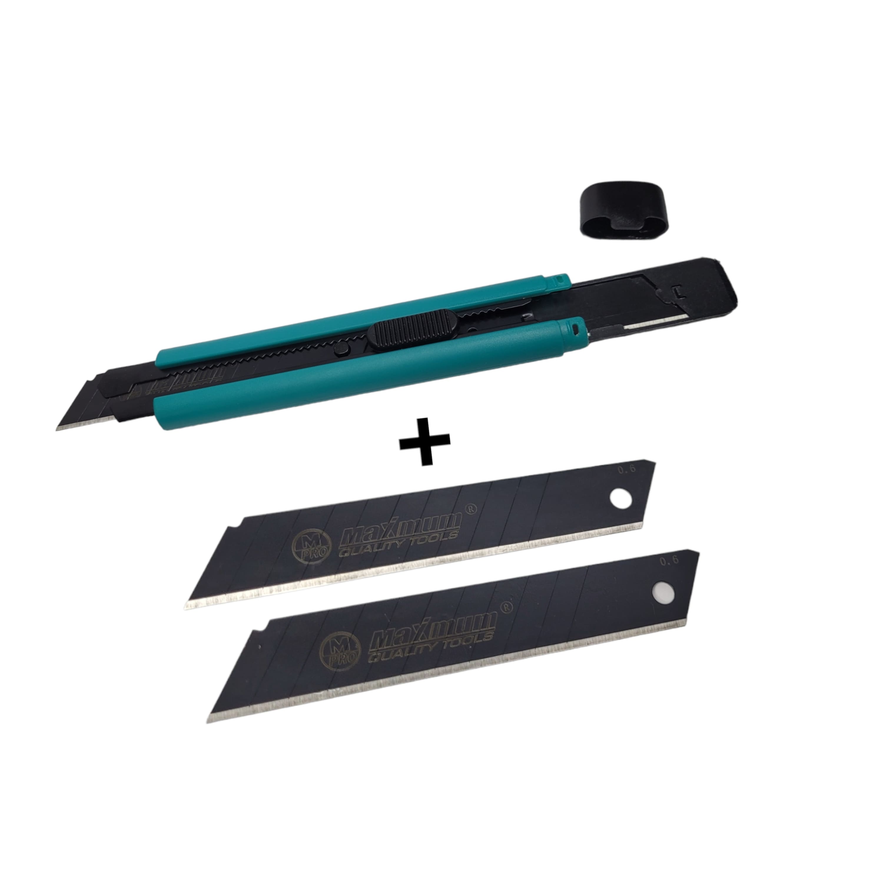 Нож канцелярский/строительный с кнопкой фиксации от "Maximum Quality Tools" предназначен для разрезания гипсокартона, бумаги, обоев, картона, ковролина, линолеума и т.п. Стильный пластиковый корпус выпускается в 3 цветах и дополнен металлической направляющей, а также отсеком для запаски. Общая длина ножа 160 мм, ширина 30 мм. Усиленный канцелярский нож поставляется с 3мя чернеными лезвиями толщиной 0.6 мм.