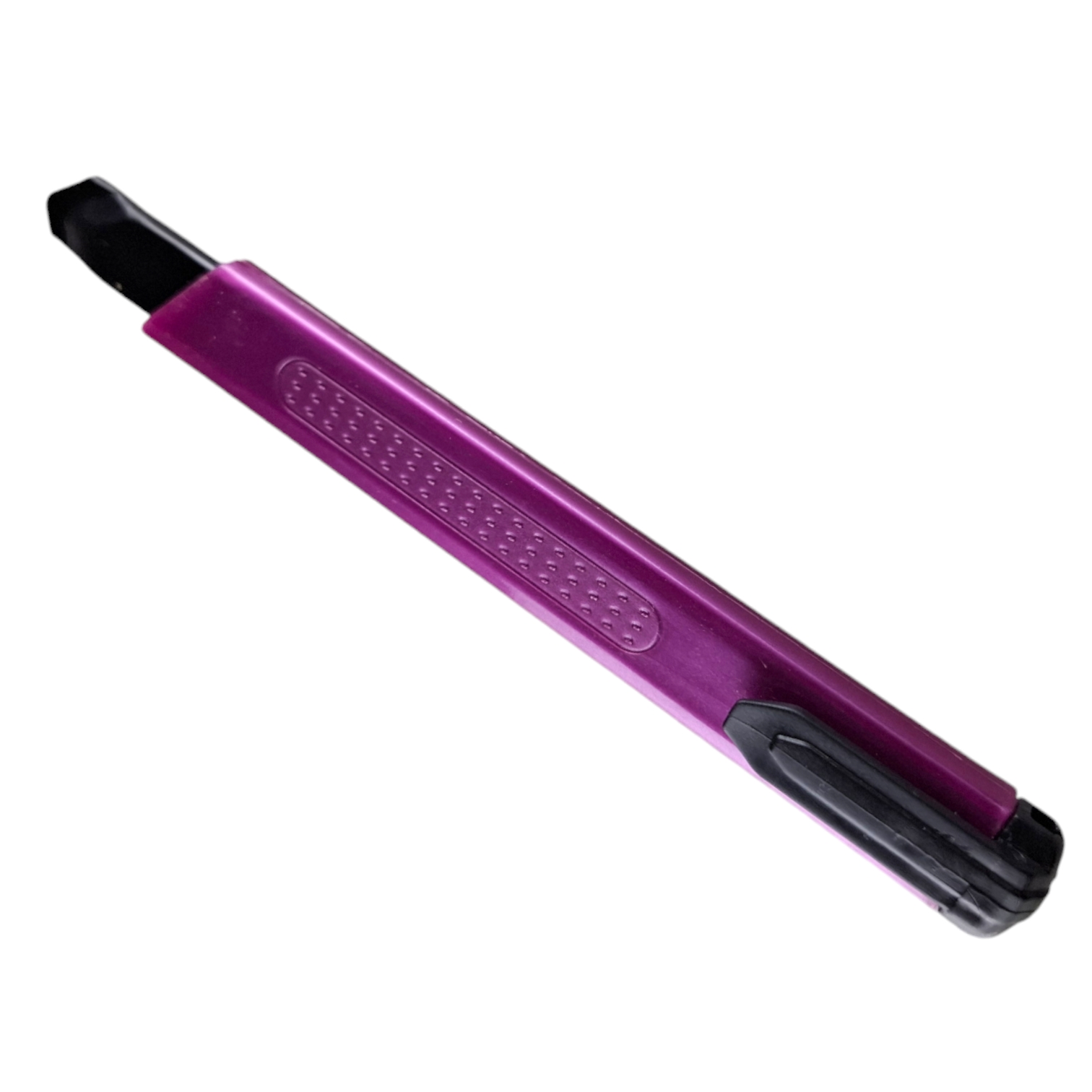 Нож канцелярский с фиксатором и металлической направляющей оборудован сегментированным лезвием 11× 85 мм и поставляется в различных цветах. Канцелярские ножи длиной 145 мм поставляются по 25 шт. в пластиковом боксе от "Maximum Quality Tools" и предназначены для резки бумаги, картона, ткани и пластика. Ребристый пластиковый корпус надежно лежит в руке и не скользит. Отламывающиеся сегментированные стальные лезвия не боятся коррозии и имеют качественную заводскую заточку. Система фиксации лезвия push-lock и насадка для безопасного отделения сегмента лезвия делают работу безопасной.