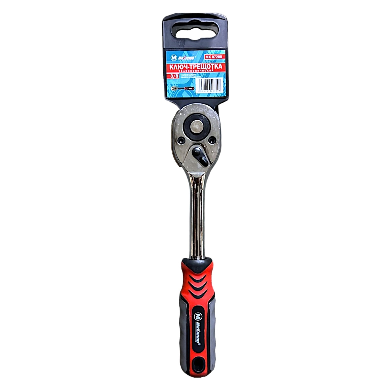 Ключ трещоточный на 3/8 от «Maximum Quality Tools» оборудован храповым механизмом с переключателем, который обеспечивает плавный ход и возможность быстрой смены направления вращения ключа. Присоединительный квадрат с шариковым фиксатором надежно удерживает съемные торцевые головки. Головка ключа-трещотки выполнена в форме капли и позволяет с легкостью добираться до труднодоступных мест. Удобная двухкомпонентная рукоятка с отверстием для подвеса прорезинена и создает крепкий и надежный обхват.