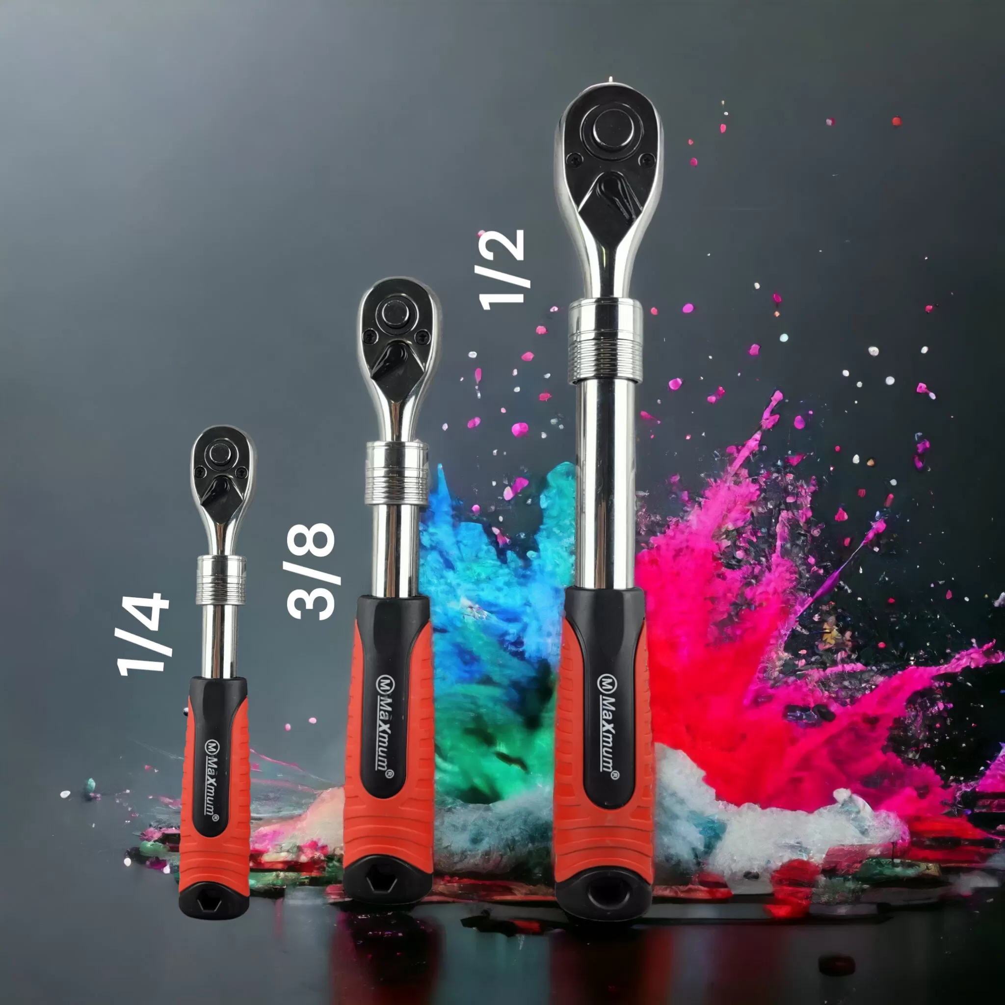 Телескопический трещоточный ключ на 1/2 от «Maximum Quality Tools» прост и удобен в работе благодаря встроенному телескопическимому механизму ( общая длина от 300 до 430 мм). Храповый механизм с переключателем обеспечивает плавный ход и возможность быстрой смены направления вращения ключа. Присоединительный квадрат с шариковым фиксатором и реверсом надежно удерживает съемные торцевые головки. Головка трещотки выполнена в форме капли и позволяет с легкостью добираться до труднодоступных мест. Эркономичная двухкомпонентная рукоятка прорезинена и создает крепкий и надежный обхват. Инструмент изготовлен из прочной хромваннадиевой стали, благодаря чему имеет высокий рабочий ресурс.