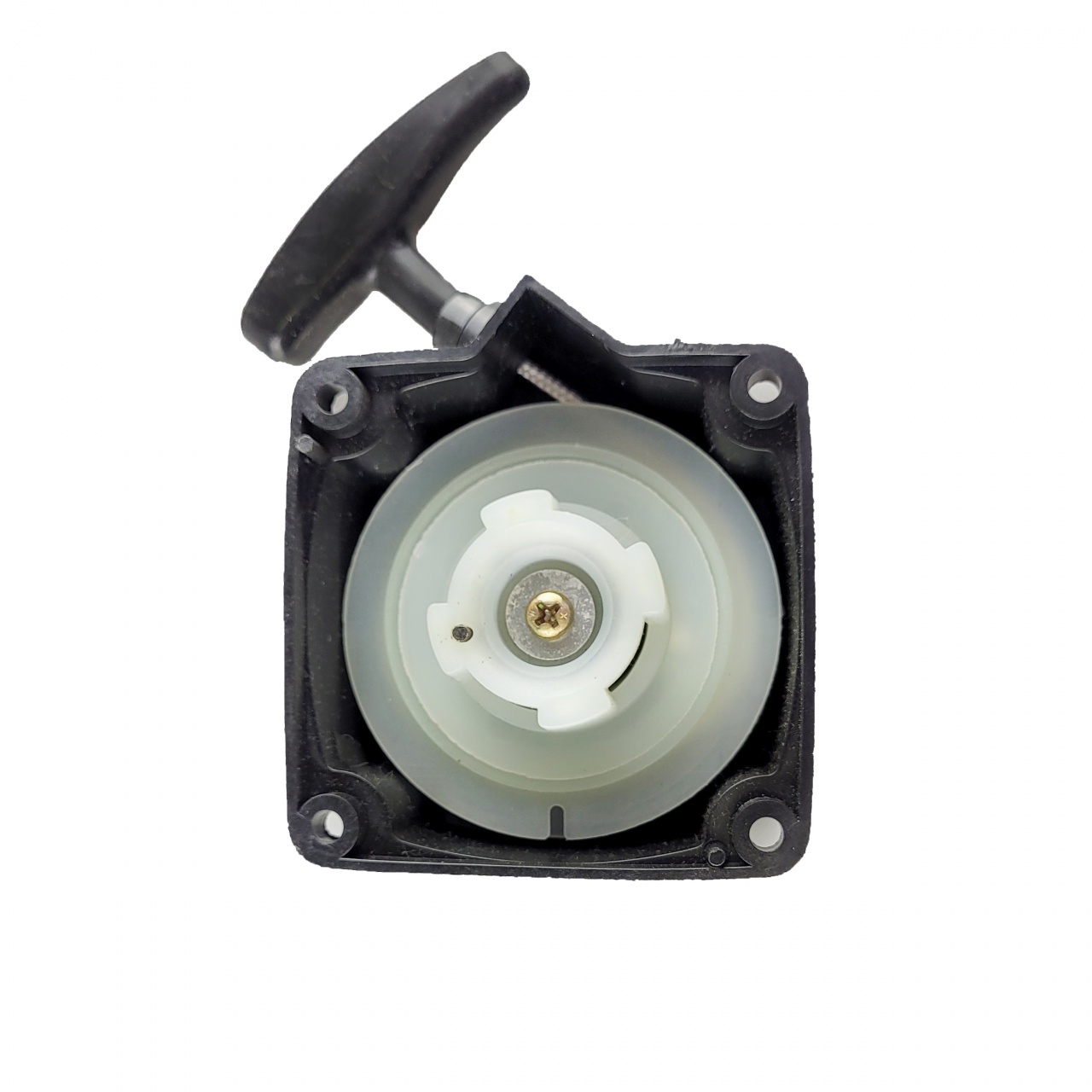 Стартер ручной в сборе предназначен для мотокос 033/043/052 (плавный пуск). Стартер также подходит для мотобуров IRON MOLE E43, E53, E83 и FISHTOOL Stark Pro 52. Совместим с другими моделями бензобуров аналогичной конструкции. Габариты 80x80 мм, диаметр шкива 75 мм, длина пускового троса 80 мм. Крепится на 4 болта.