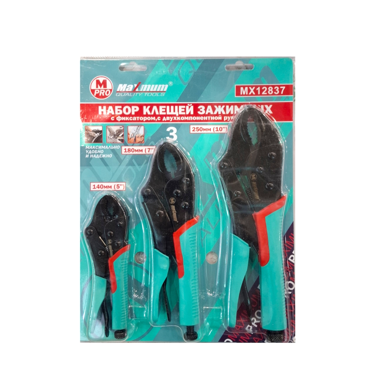 Набор клещей зажимных включает в себя три инструмента: