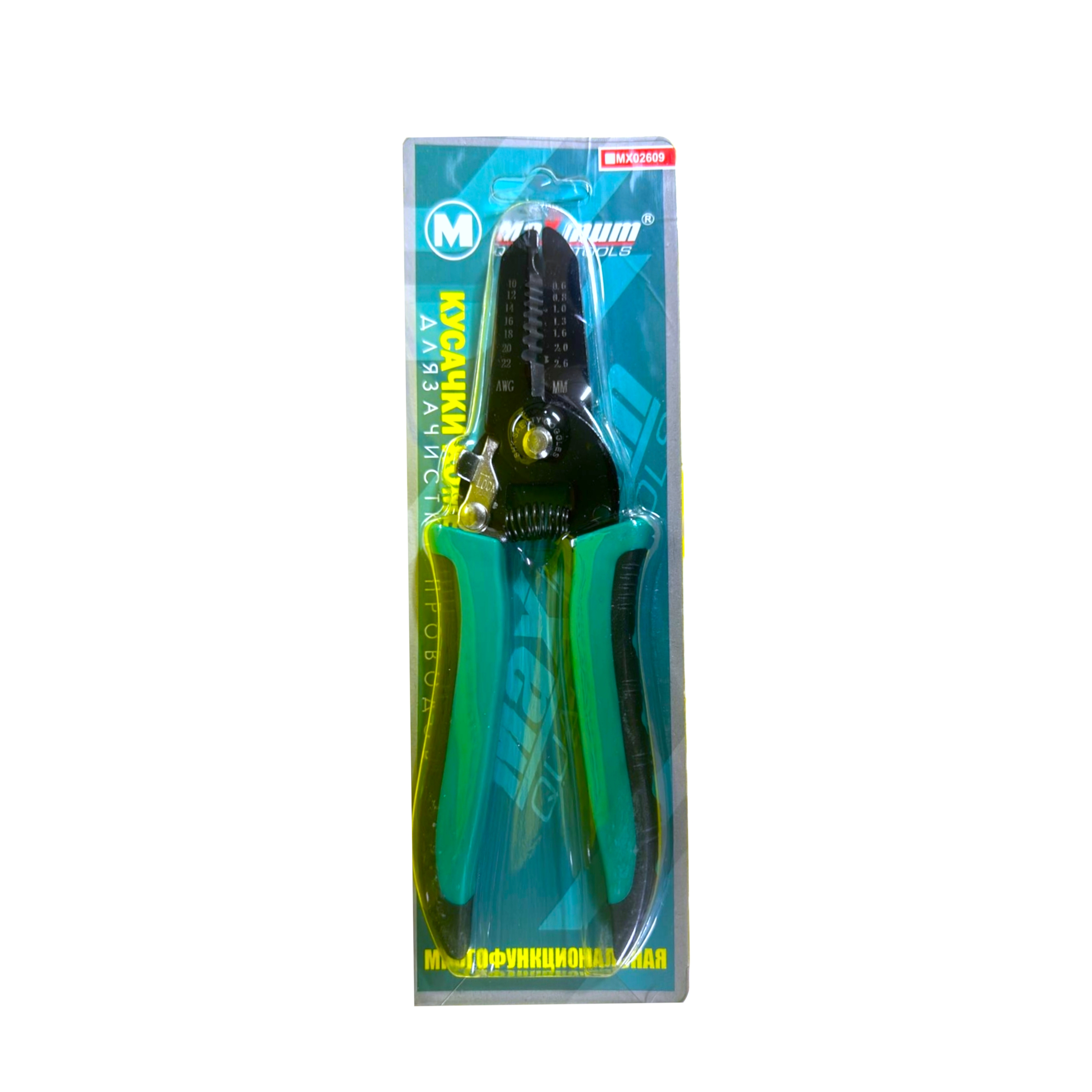 Стриппер для проводов 0,8 - 2,6 мм снабжен несколькими пазами для зачистки кабелей различного диаметра. Острые кромки пазов на губках инструмента обеспечивают быстрое и качественное снятие изоляции. В конструкцию инструмента включено приспособление для резки проводов. Нескользящие двухкомпонентные рукоятки оборудованы вставками из мягкой термопластрезины.