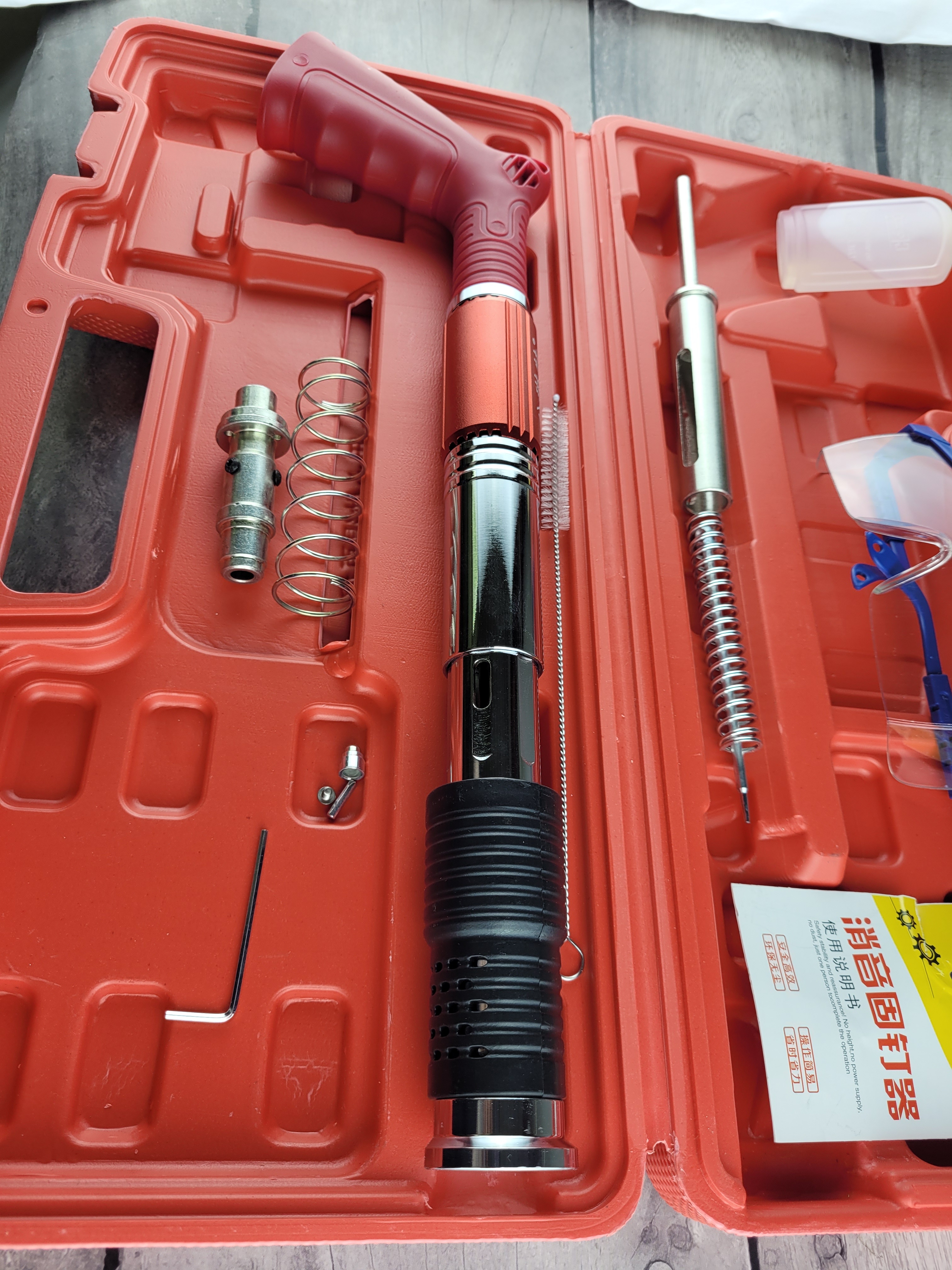 Легкий и компактный пороховой мини-пистолет длиной всего 40 см. без труда пробивает бетон, цемент, кирпич, металл и плотные деревянные панели.