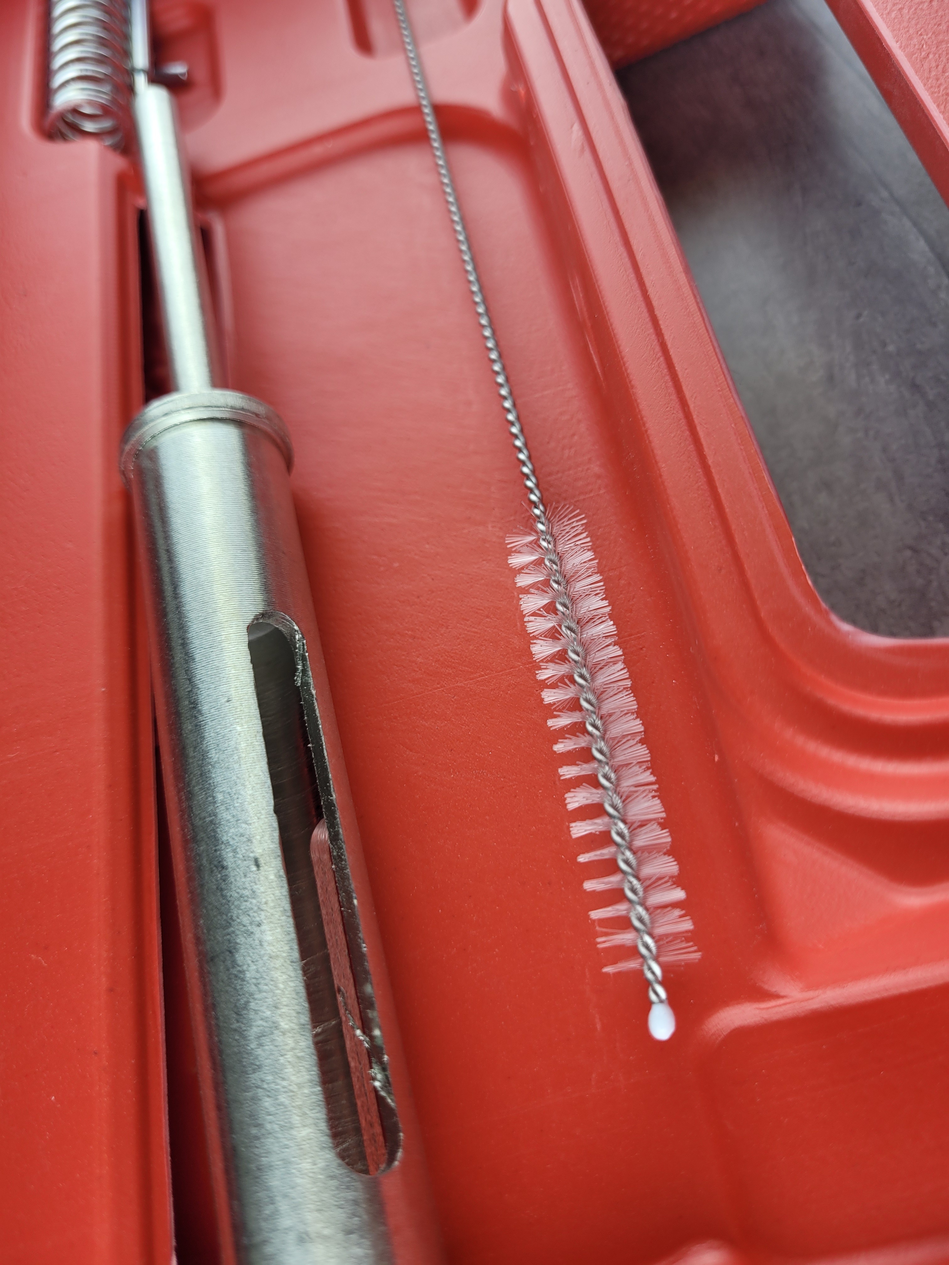 Встроеный глушитель делает работу комфортное. Прорезиненные вставки на рукояти обеспечивают надежное удержание инструмента и снижают отдачу от выстрела.