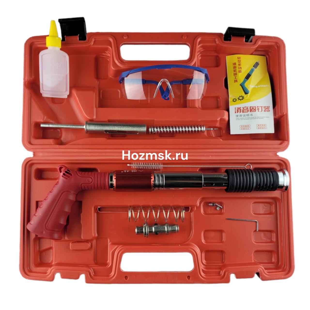 Универсальный монтажный пороховой пистолет от "Maximum Quality Tools" подходит для всех универсальных дюбель-гвоздей диаметром 7.3/8.5 мм и имеет ступенчатую регулировку мощности. Подходящая длина гвоздя: 25 мм, 32 мм, 42 мм.