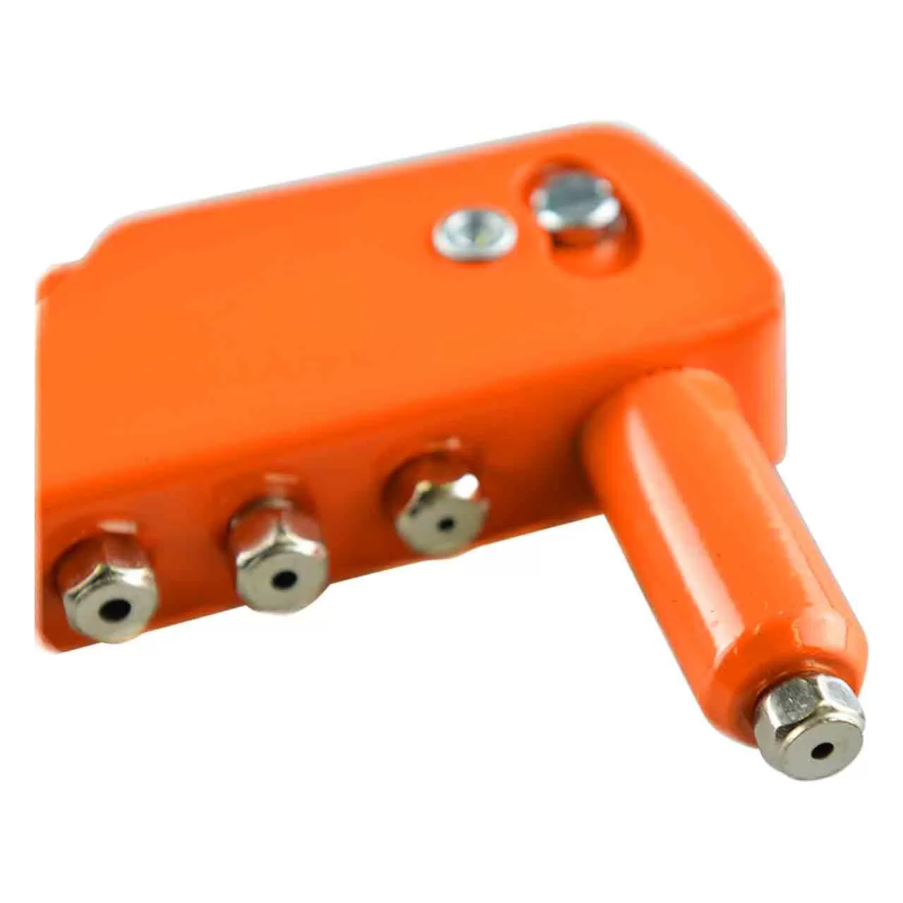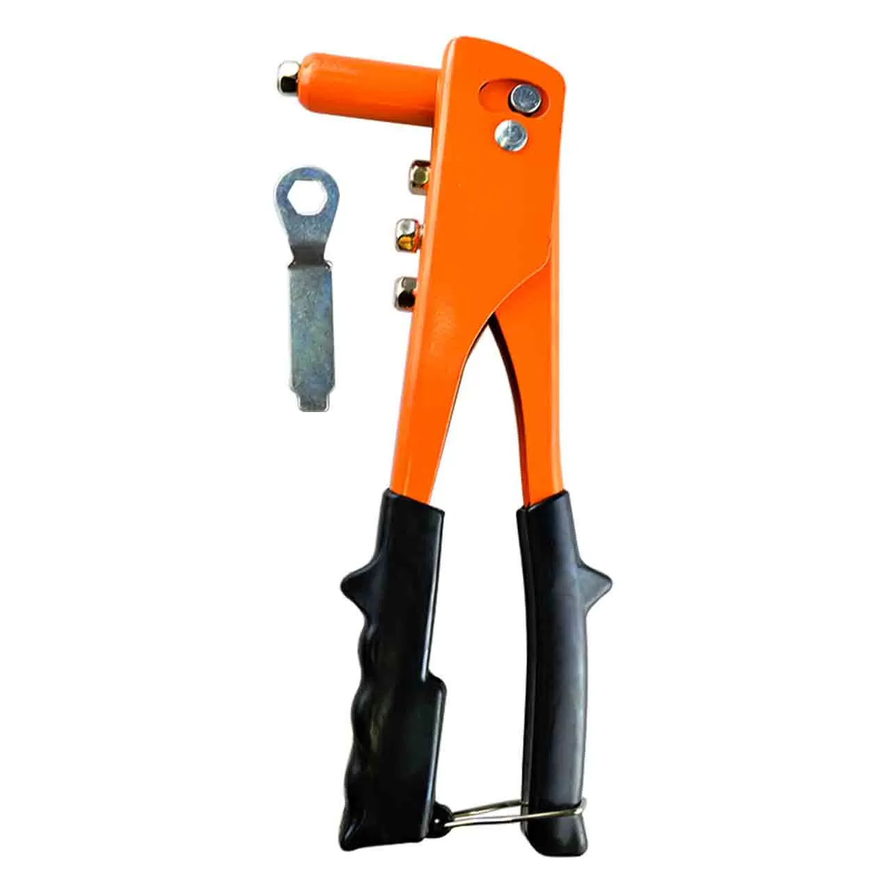 Стальной заклепочник имеет сменные 4 насадки для заклепок различных диаметров.