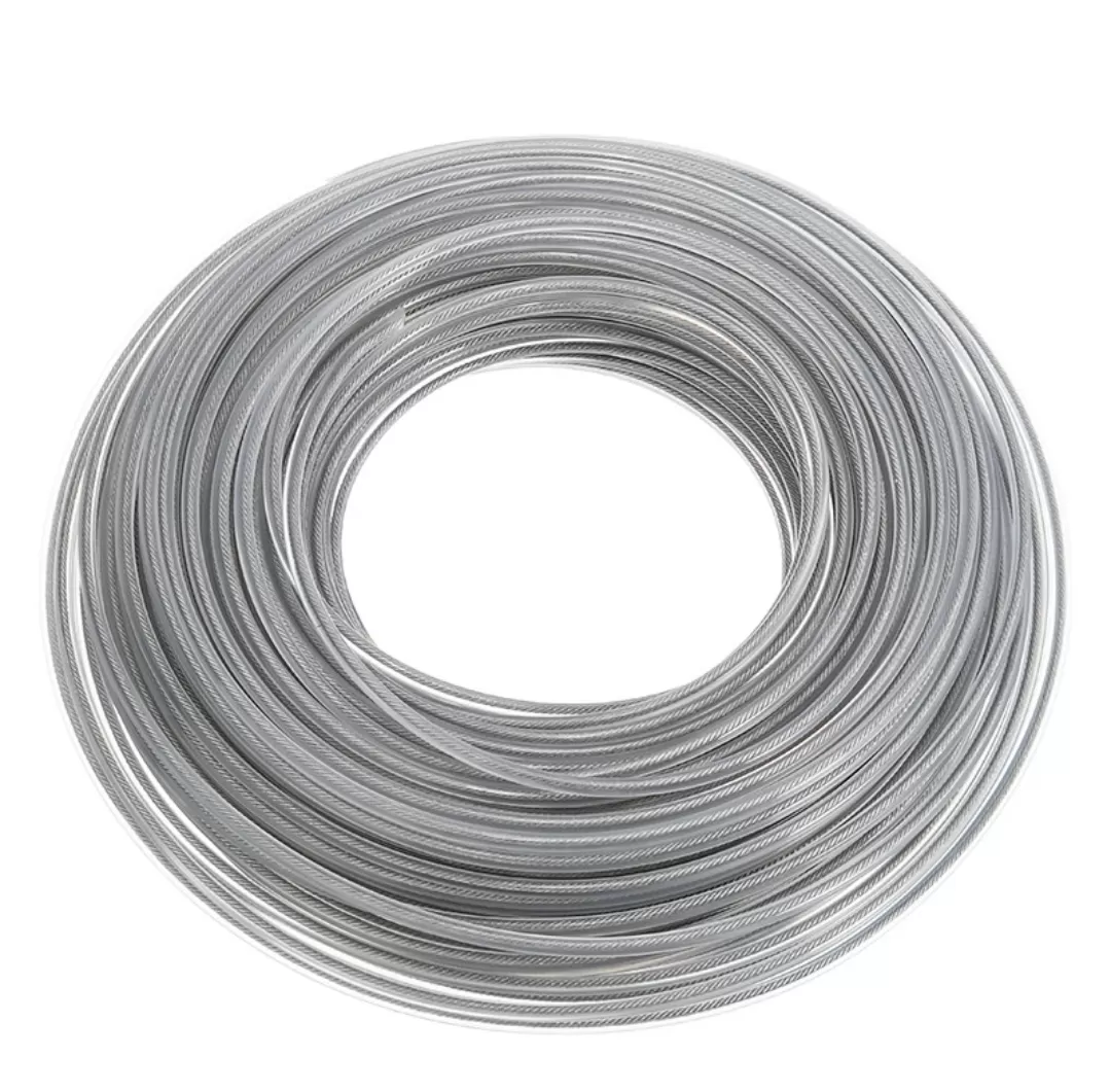 Трос для триммера 3 ммx15м в ПВХ оплетке способен справиться с самой жесткой порослью. Сечение лески и наличие жесткого сердечника увеличивают ресурс ее работы и уменьшают уровень шума при работе. Наружный слой изготовлен из термостойкого материала, который препятствует перегреву лески и предотвращает эффект «залипания».