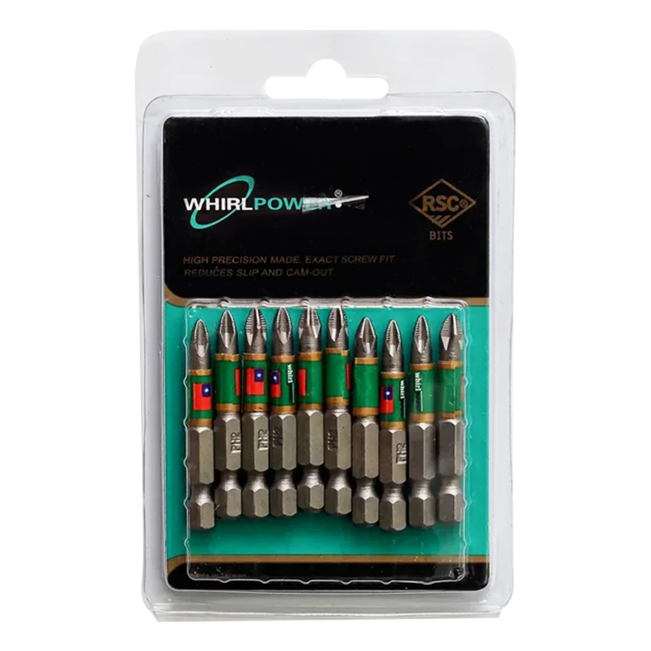 Биты PH2 применяются в качестве насадок для электроинструмента. Основу стальных бит составляет шестигранный хвостовик размером 0,6 см (1/4 дюйма). Длина биты 50 мм, тип шлица — PH2 (крестообразный). Набор из десяти бит упакован в жесткую термоформованную пленочную коробку (double blister).Биты из высокопрочной легированной стали способны выдерживать продолжительные нагрузки, что позволяет рекомендовать набор для профессионалов. Биты подойдут для всех типов отверток, шуруповертов, дрелей, в том числе ударных.