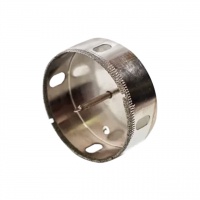 Оснастка с цилиндрическим хвостовиком для дрели и шуруповерта применяется с подачей воды в зону реза. Жидкость препятствует перегреву кромки и вымывает шлам. Нержавеющая сталь делает конструкцию надежной и долговечной.