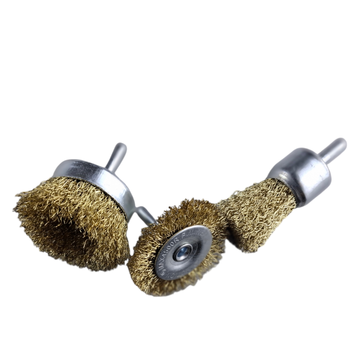 Набор латунированных корщеток для дрели круговых от "Maximum Quality Tools" выполнен из латунированной проволоки 0,3 мм и имеет цилиндрический хвостовик. Насадки для дрели и шуруповерта используются для зачистки поверхностей сложных форм от лакокрасочных покрытий, ржавчины и других загрязнений перед процессом покраски. Щетина изготовлена из высококачественной стали. Корщетки по металлу предназначены для работ лёгкого и среднего уровня сложности в труднодоступных местах, например, в углах.