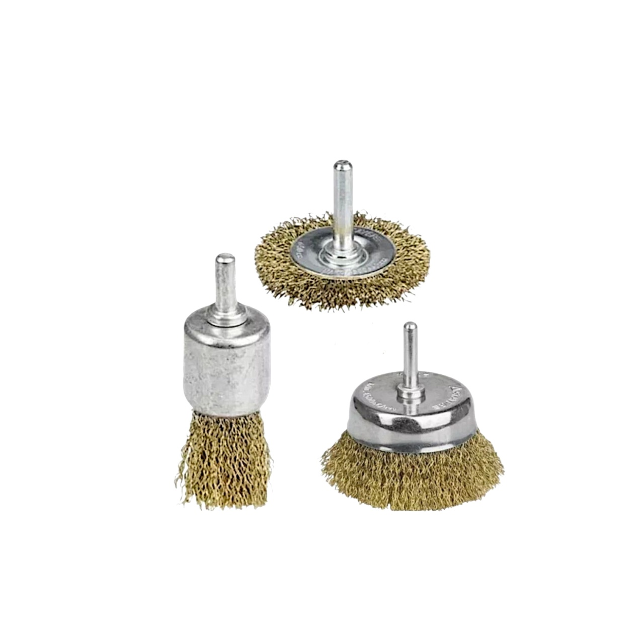 Набор латунированных корщеток для дрели круговых от "Maximum Quality Tools" выполнен из латунированной проволоки 0,3 мм и имеет цилиндрический хвостовик. Насадки для дрели и шуруповерта используются для зачистки поверхностей сложных форм от лакокрасочных покрытий, ржавчины и других загрязнений перед процессом покраски. Щетина изготовлена из высококачественной стали. Корщетки по металлу предназначены для работ лёгкого и среднего уровня сложности в труднодоступных местах, например, в углах.