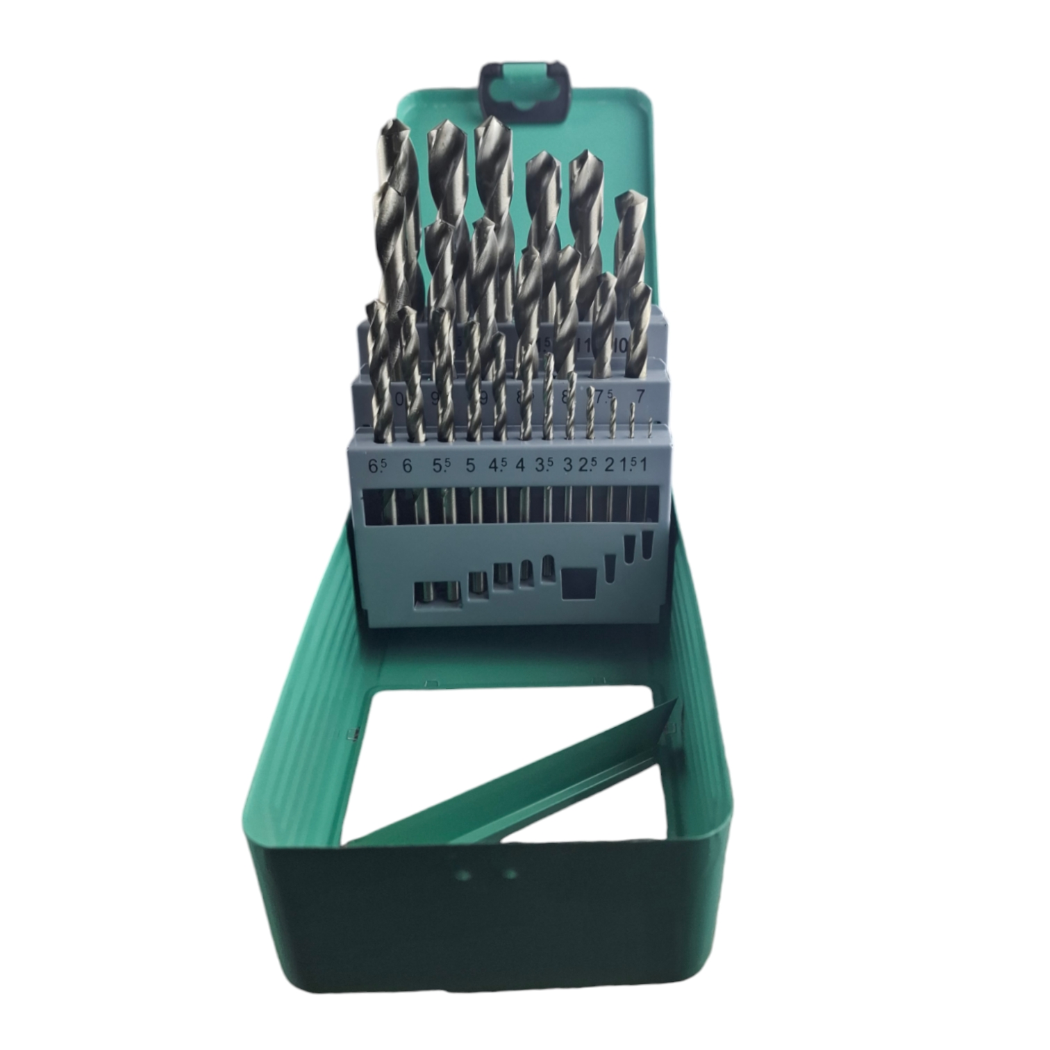 В наборе представлены самые популярные размеры винтовых высокопрочных сверл с шагом в полмиллиметра от 1 - 13мм. Это качественные насадки с высоким ресурсом, которые оборудованы цилиндрическим хвостовиком.